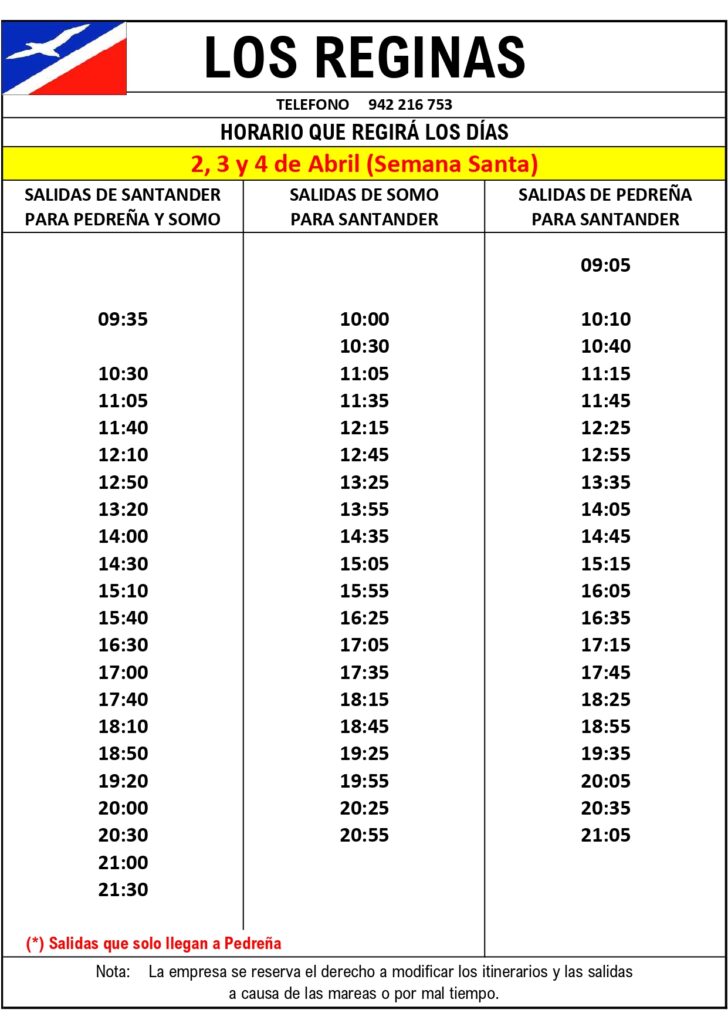 HORARIO SEMANA SANTA PARA SANTANDER-PEDREÑA-SOMO Y VICEVERSA